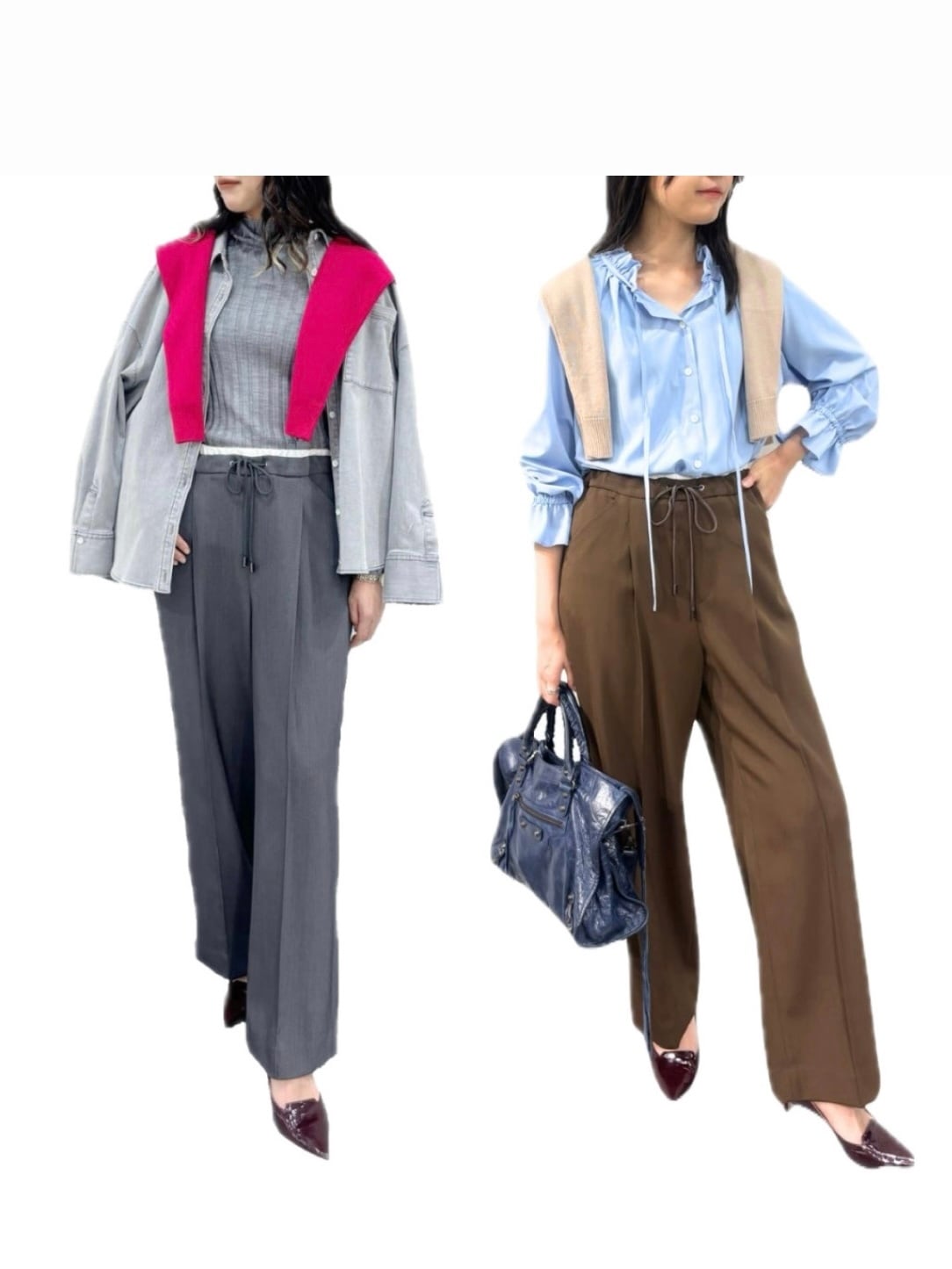 ブラウンカラーはシンプルなトップスと合わせたり、今期流行りのブルー×ブラウンコーデもできます⭐︎